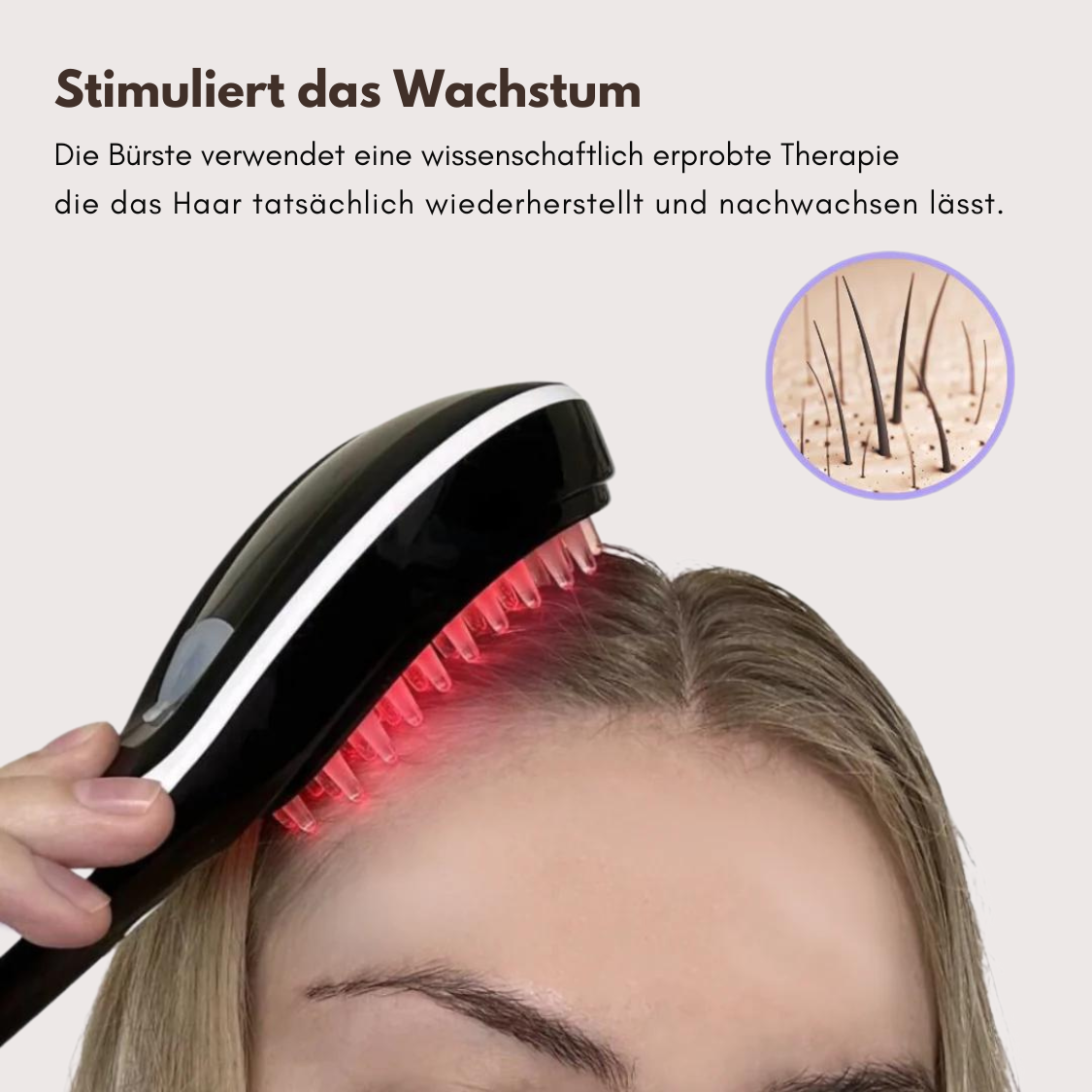 Verjüngen Sie das Haarwachstum und fördern Sie dickeres, gesünderes Haar mit der HaarGlanz-Bürste. Unsere 4-in-1-Bürste nutzt eine wissenschaftlich fundierte Technologie zur Haarwiederherstellung, um das BESTE und Gesündeste aus Ihrem Haar herauszuholen - für ALLE Haartypen!