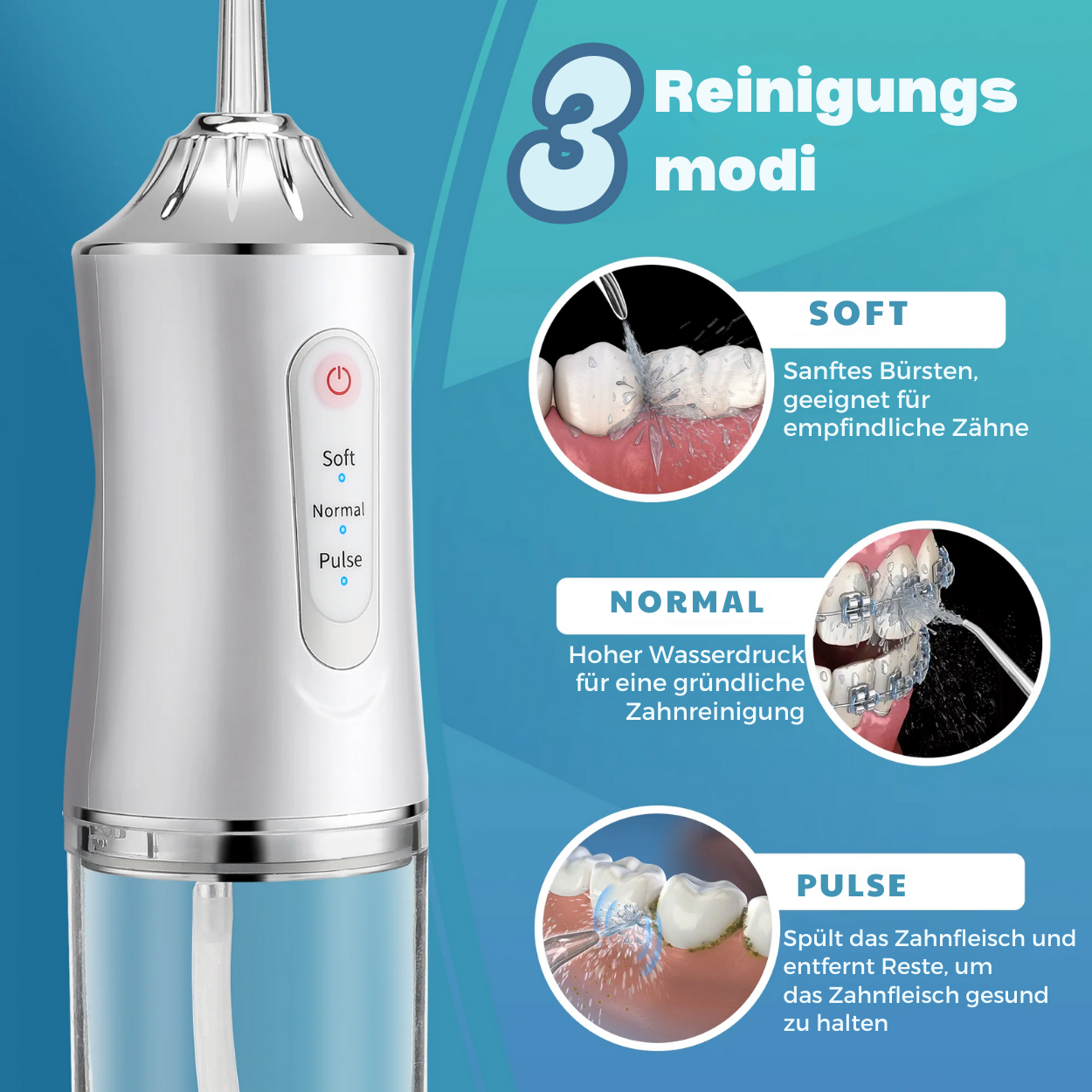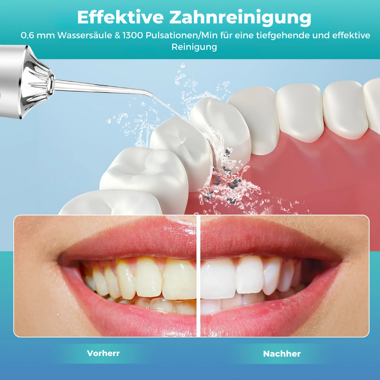 Der PowerFloss™ Wasserflosser sorgt für eine gründliche Reinigung von Zähnen und Zahnfleisch. Mit seiner starken Wasserstrahl und 1300 Pulsationen pro Minute entfernt er Zahnbelag, Essensreste und Schmutz an schwer erreichbaren Stellen. Egal, ob du deine tägliche Mundpflege verbessern oder deine Mundgesundheit erhalten möchtest – PowerFloss™ sorgt für ein strahlendes Lächeln.