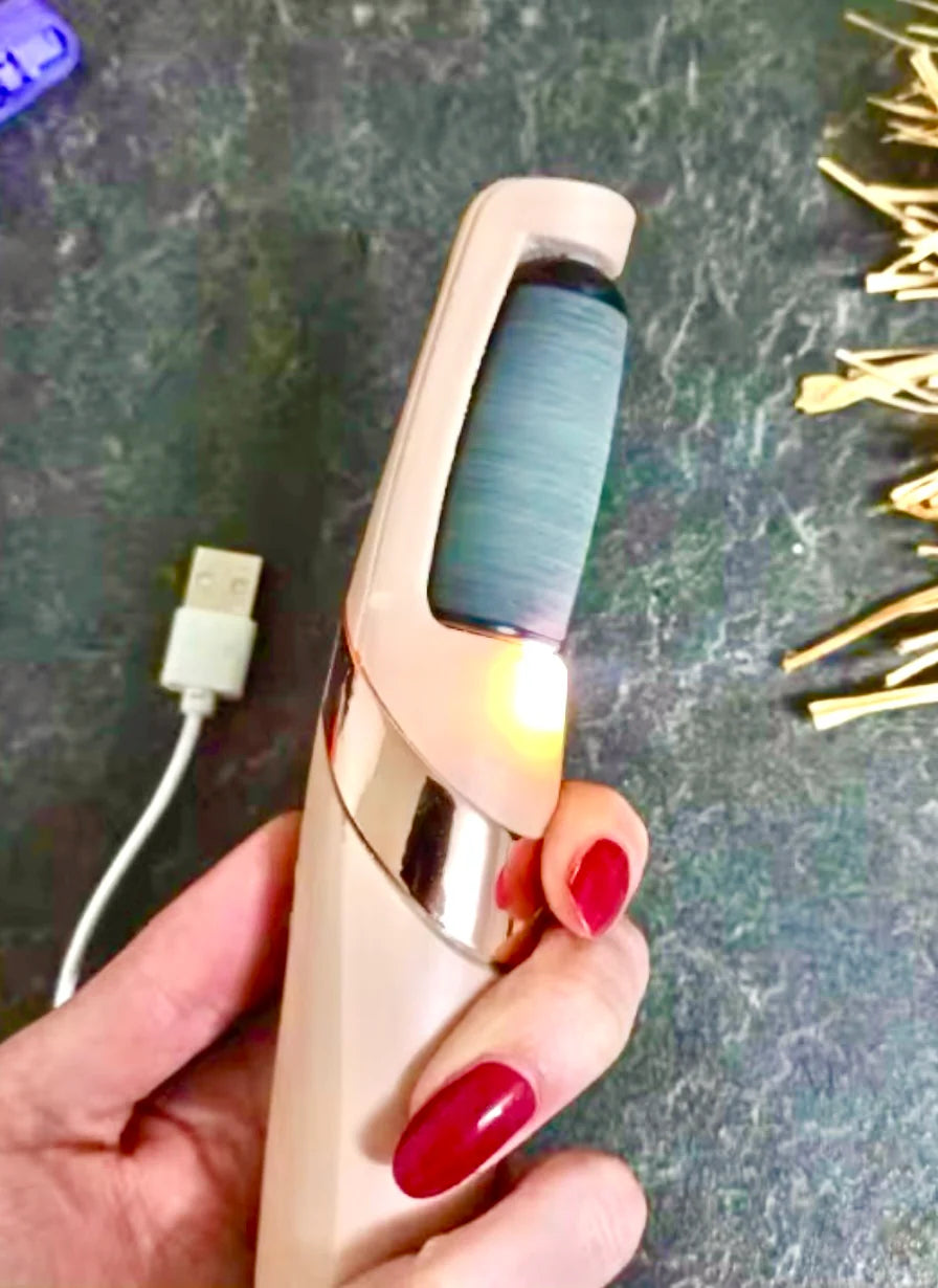 Das elektrische Pediküre-Werkzeug™ entfernt Hornhaut und abgestorbene Haut in Sekunden. Die leistungsstarke, rotierende Klinge sorgt für eine gründliche und schnelle Entfernung, sodass Ihre Haut sofort weicher und glatter aussieht.