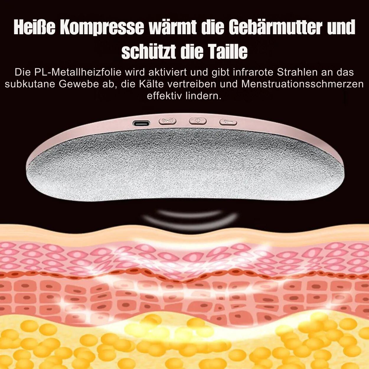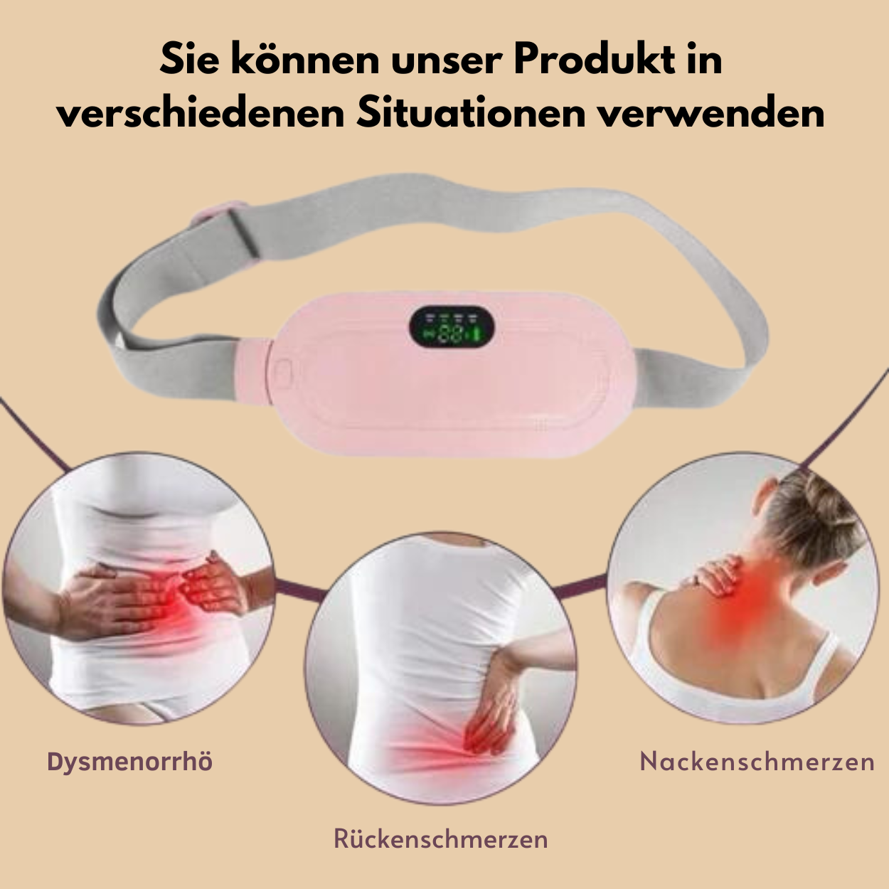 Dieses Heizkissen liefert schnelle, gezielte Wärme direkt auf den Bauch- und Rückenbereich, um Menstruationskrämpfe effektiv zu lindern. Innerhalb von Minuten fühlen Sie die wohltuende Wirkung, die die Muskeln entspannt und Schmerzen reduziert.
